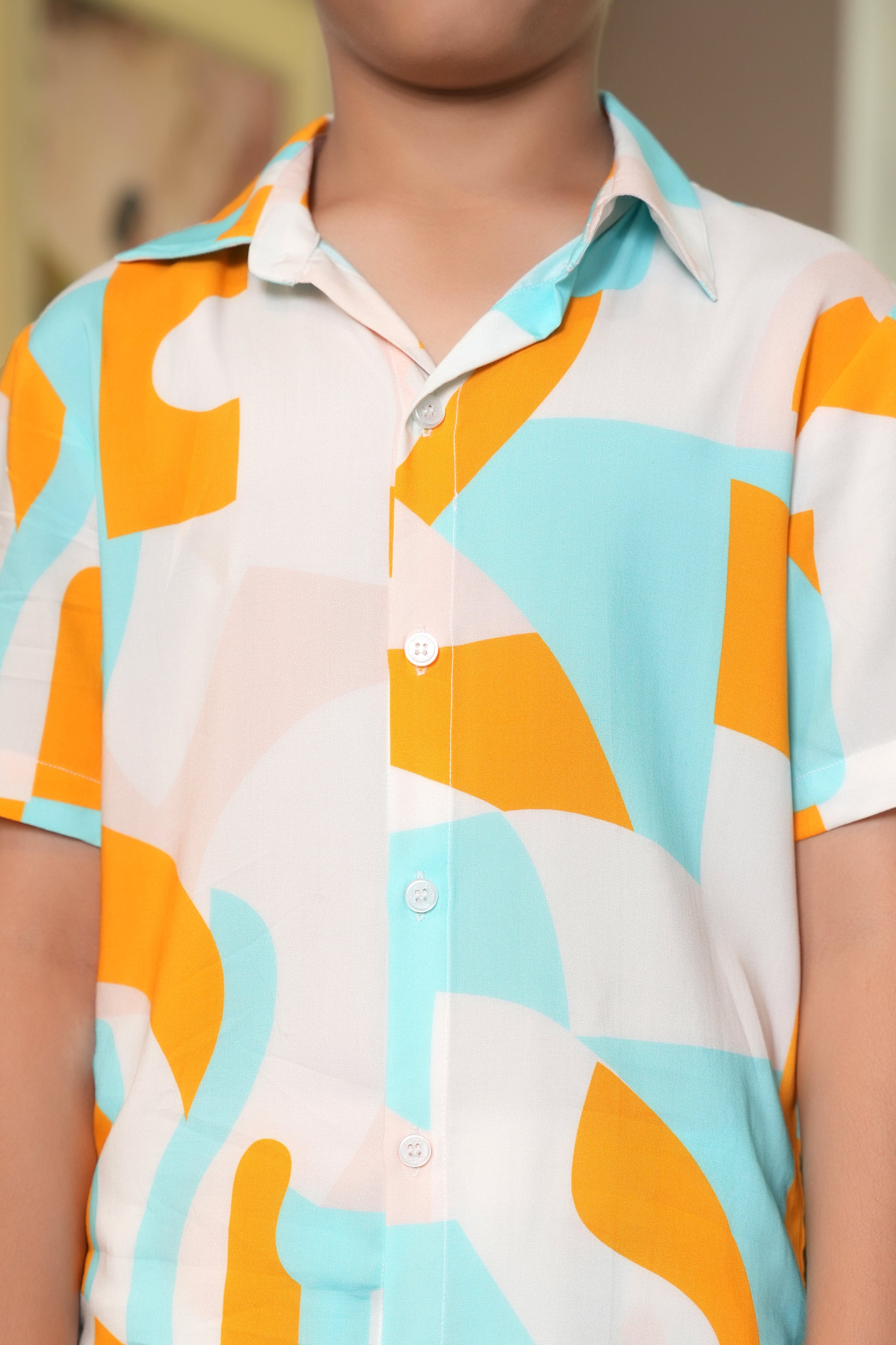 Boy’s Abstract Co-Ord Set – Turquoise & Orange Shirt & Shorts