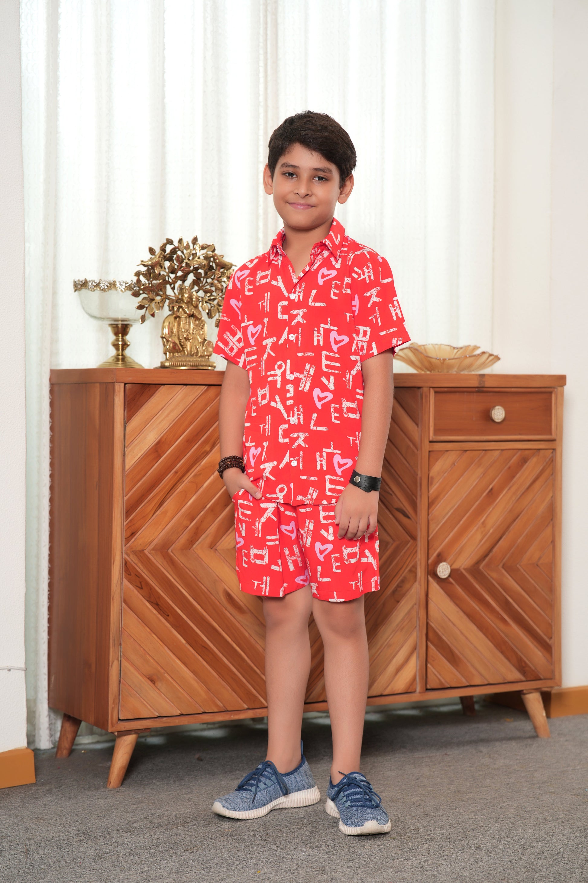 Men’s Love Script White Co-Ord Set – Romantic Shirt & Shorts Valentine Outfit