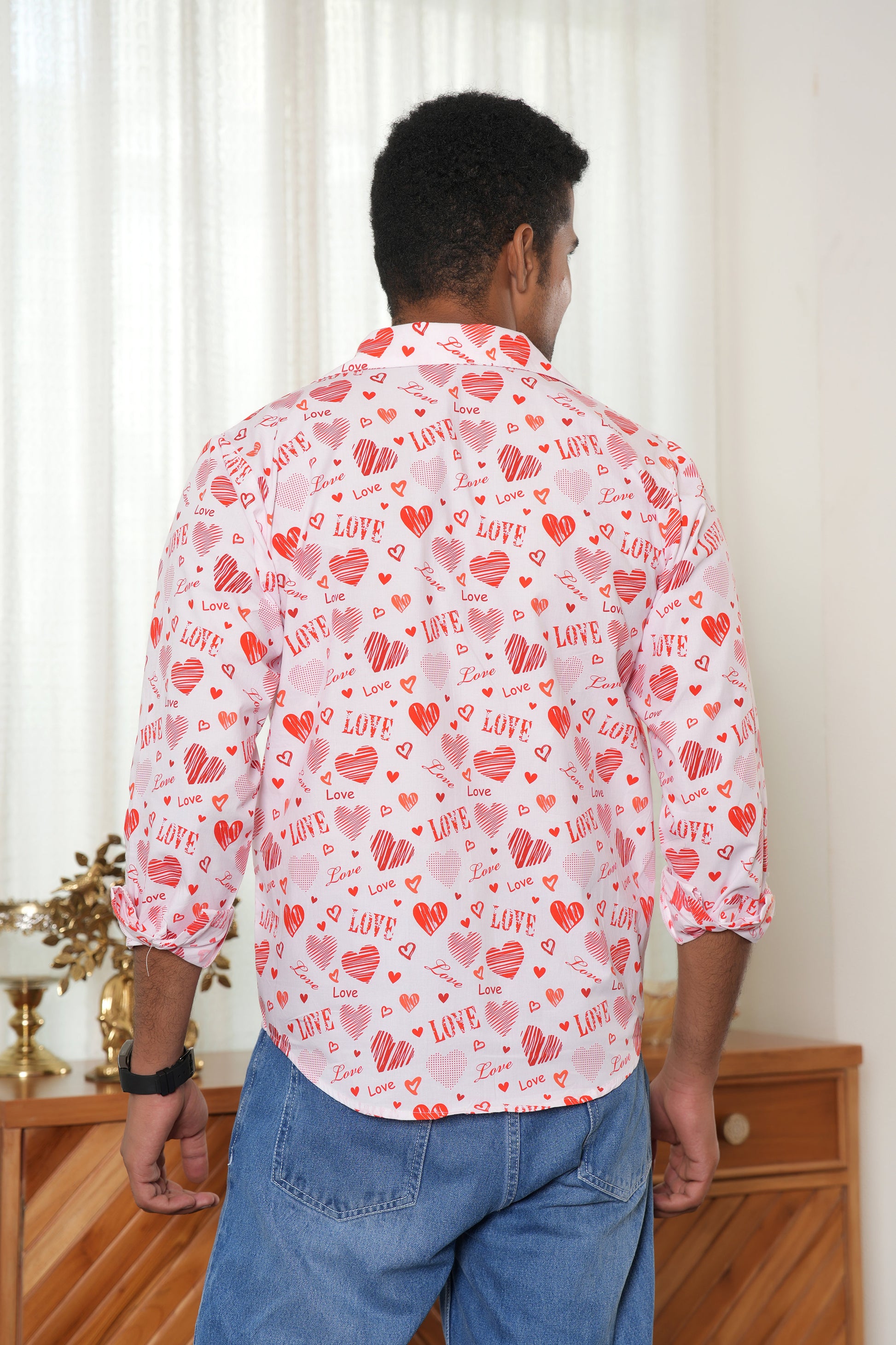 Men’s White Love Script Full Sleeve Shirt – Romantic Valentine Outfit