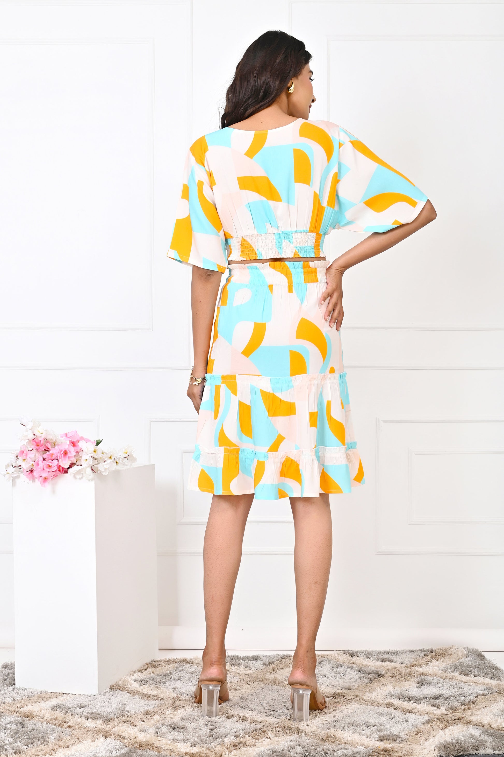 Women’s Abstract Co-Ord Set – Turquoise & Orange Top & Skirt