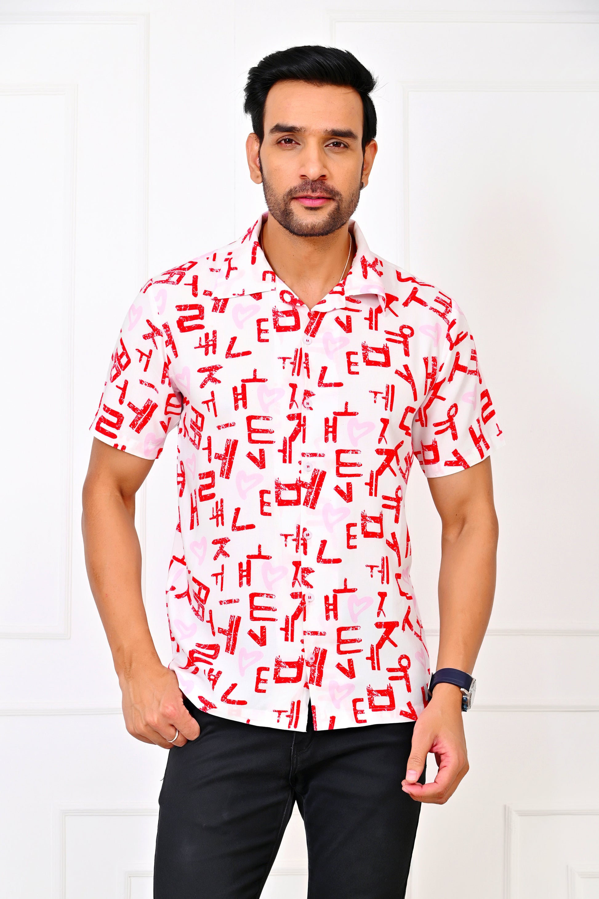 Men’s Love Script White Co-Ord Set – Romantic Shirt & Shorts Valentine Outfit