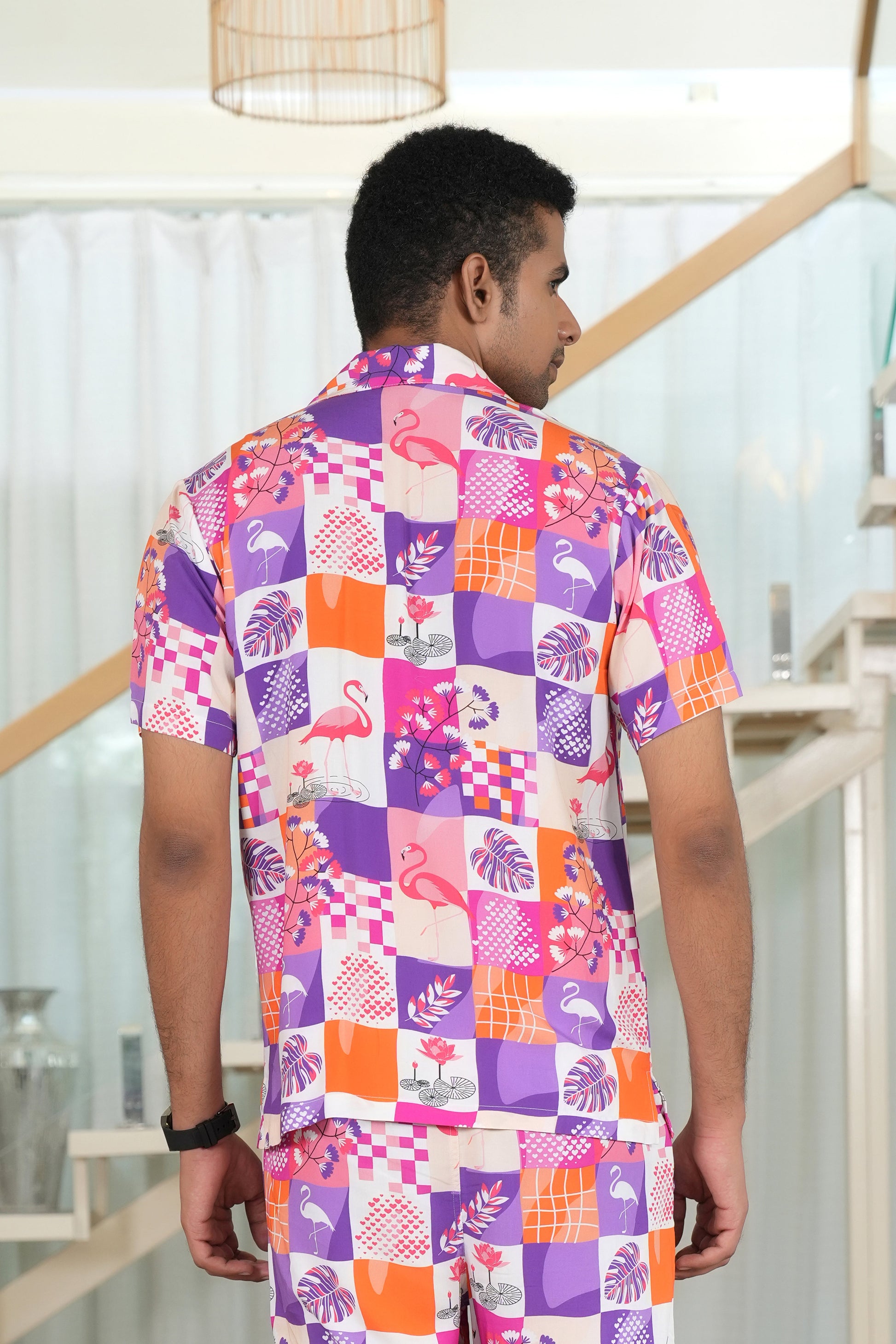Men’s Flamingo Co-Ord Set – Tropical Shirt & Shorts for Beach Vacations