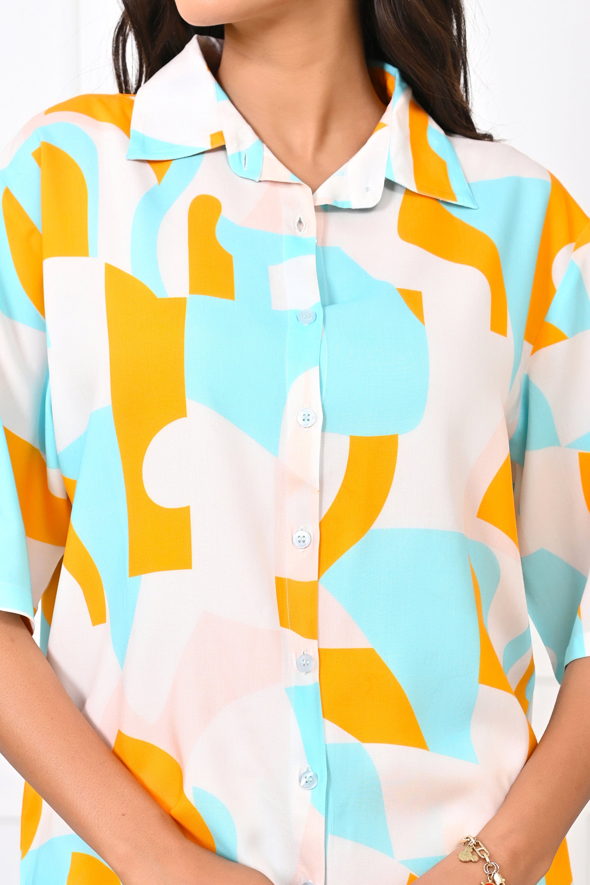 Women’s Abstract Co-Ord Set – Shirt & Shorts Summer Outfit
