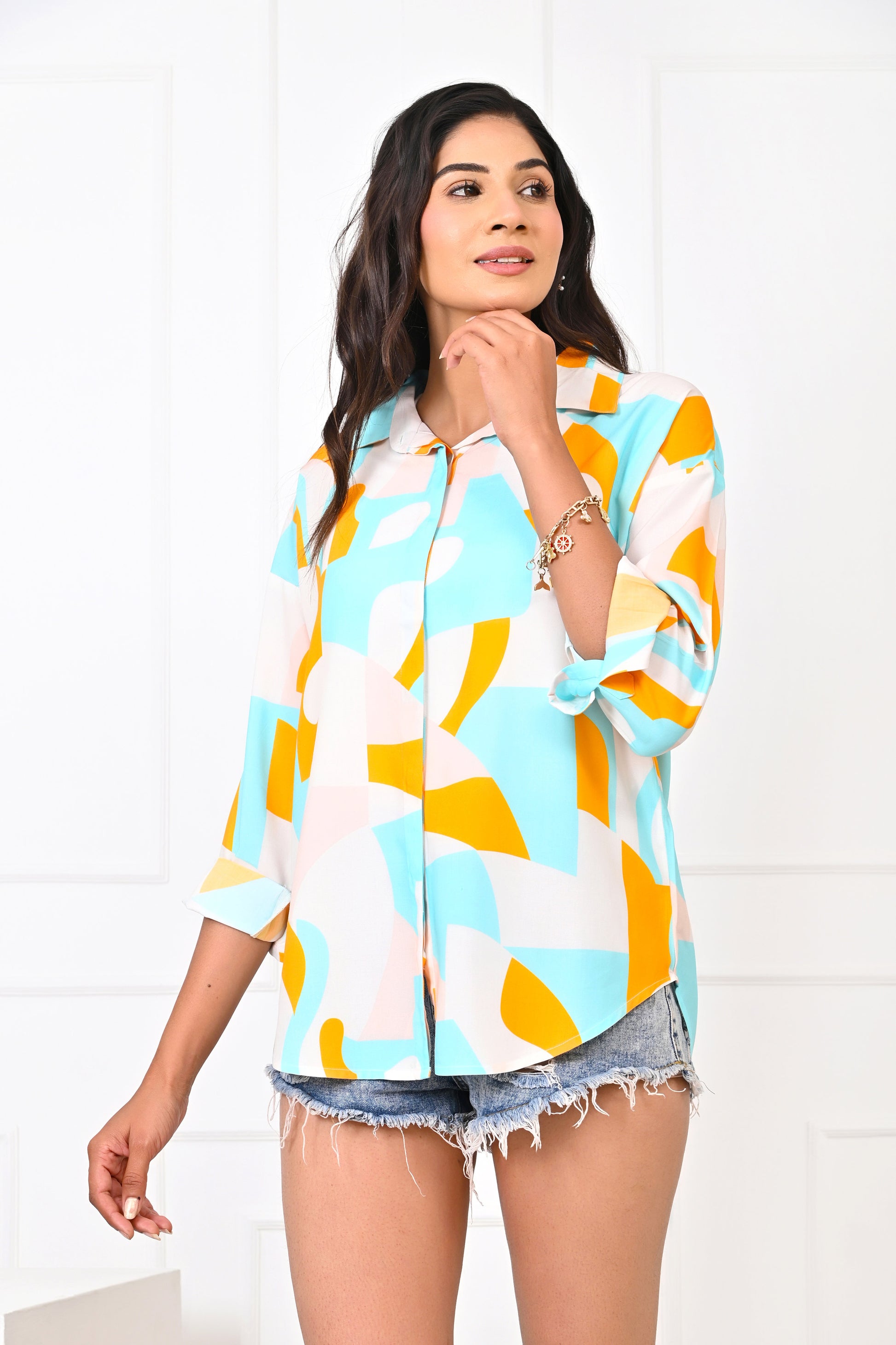 Women’s Abstract Print Short Dress – Turquoise & Orange Summer Outfit